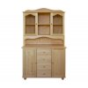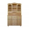 Kredenc z borovice 28 nabízí prostor na uložení nejen kuchyňských nezbytností. Horní část kredence tvoří dvoje prosklené dvířka, uprostřed nichž je police. Dolní část se skládá po stranách ze dvou jednodveřových skříněk s policí. Uprostřed jsou 4 šuplíky.