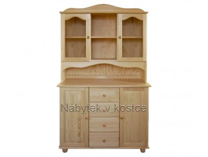 Kredenc z borovice 30 nabízí prostor na uložení nejen kuchyňských nezbytností. Horní část kredence tvoří dvoje prosklené dvířka. Dolní část nabízí skříňku s policí a šuplíky.