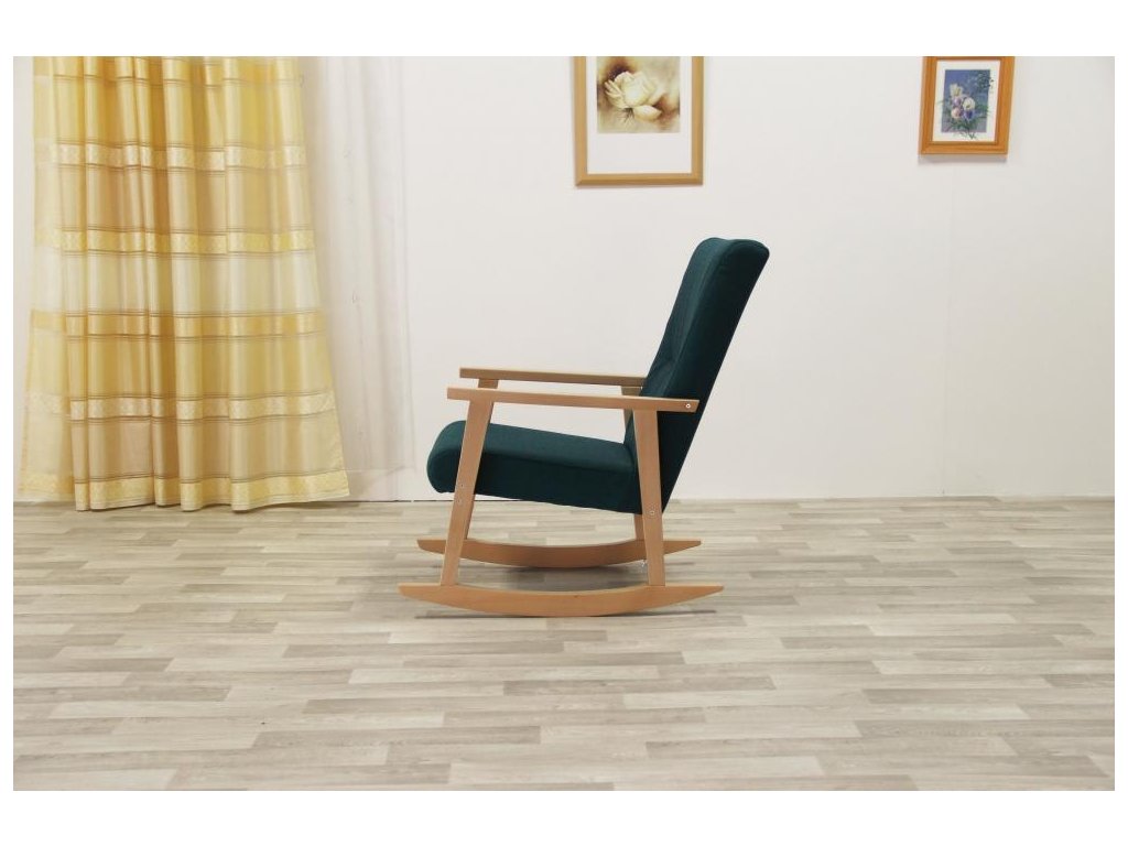 Křeslo ERIK – lehké čalouněné houpací křeslo s dřevěnou podnoží