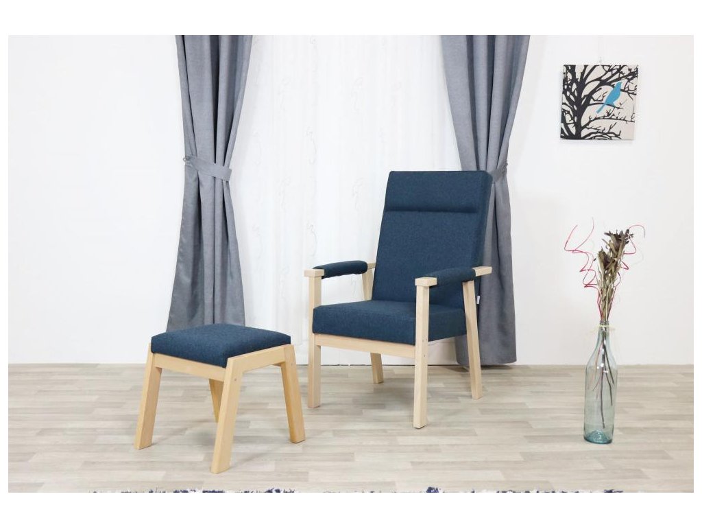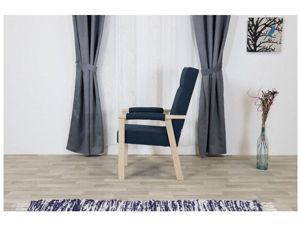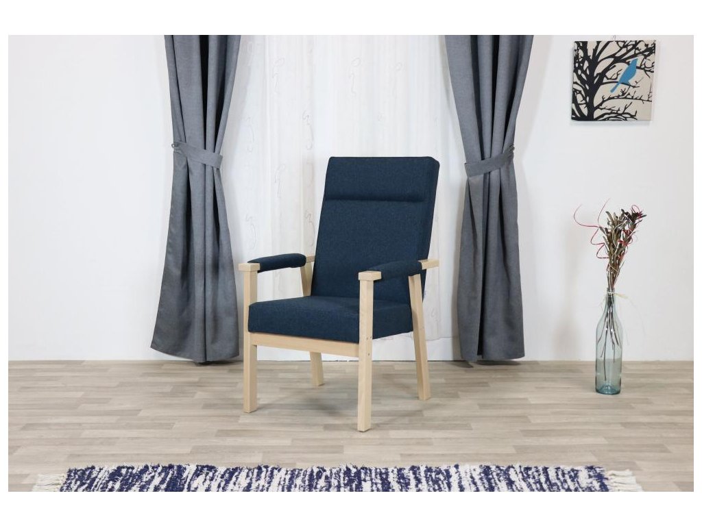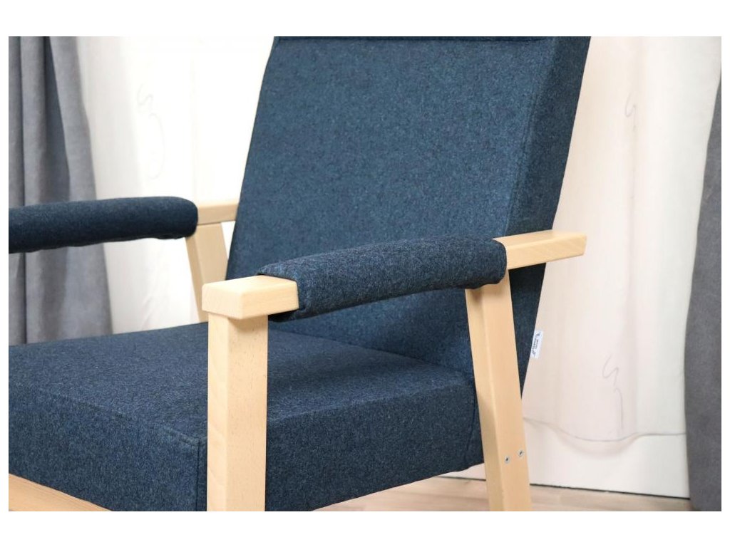 Křeslo JAKUB – lehké čalouněné křeslo s dřevěnými područkami, vhodné pro seniory