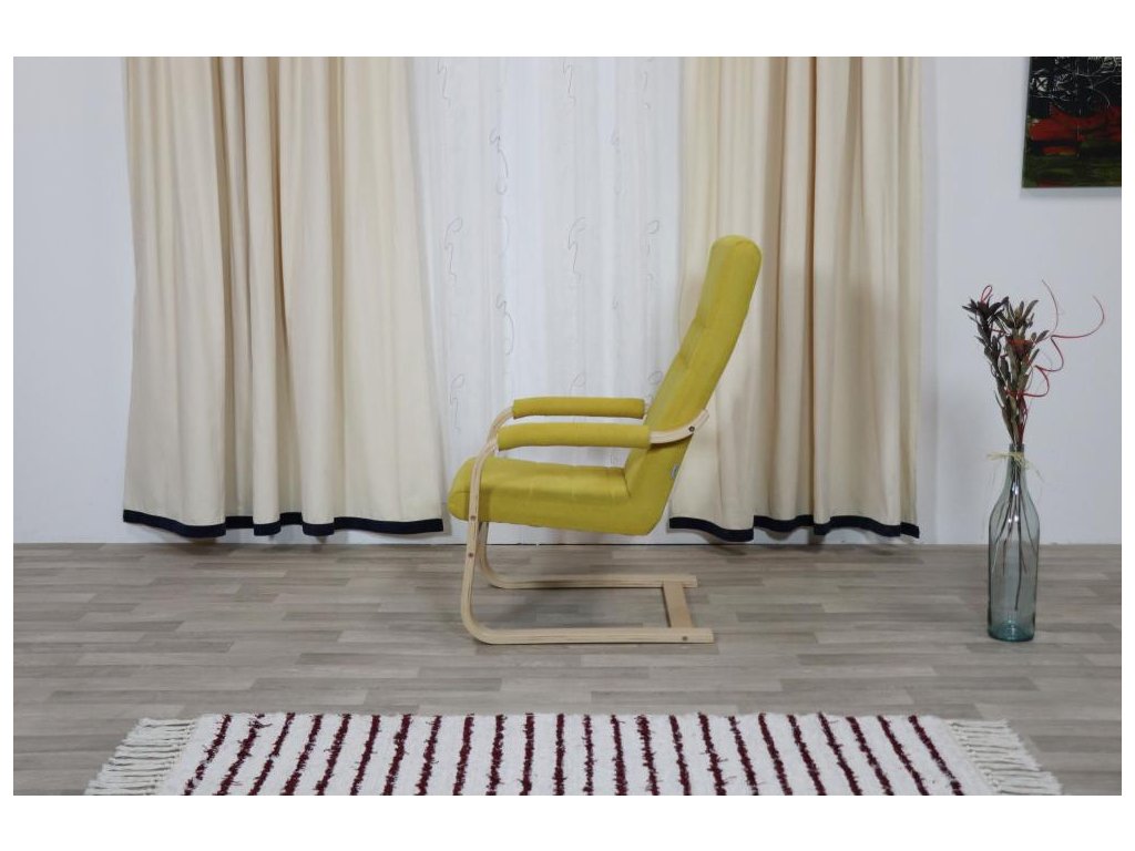 Křeslo ROBIN je lehké čalouněné pohupovací křeslo s elegantními dřevěnými lamelovanými područkami. Kostra křesla kombinuje lamelované područky a kovovou nosnou konstrukci pro pevnost a stabilitu. Sedací a opěradlové plochy jsou tvořeny sendvičovým vrstvením PUR pěn, které poskytuje komfortní a pružné sezení. Ideální pro dětské pokoje, studentské pokoje i obývací pokoje.