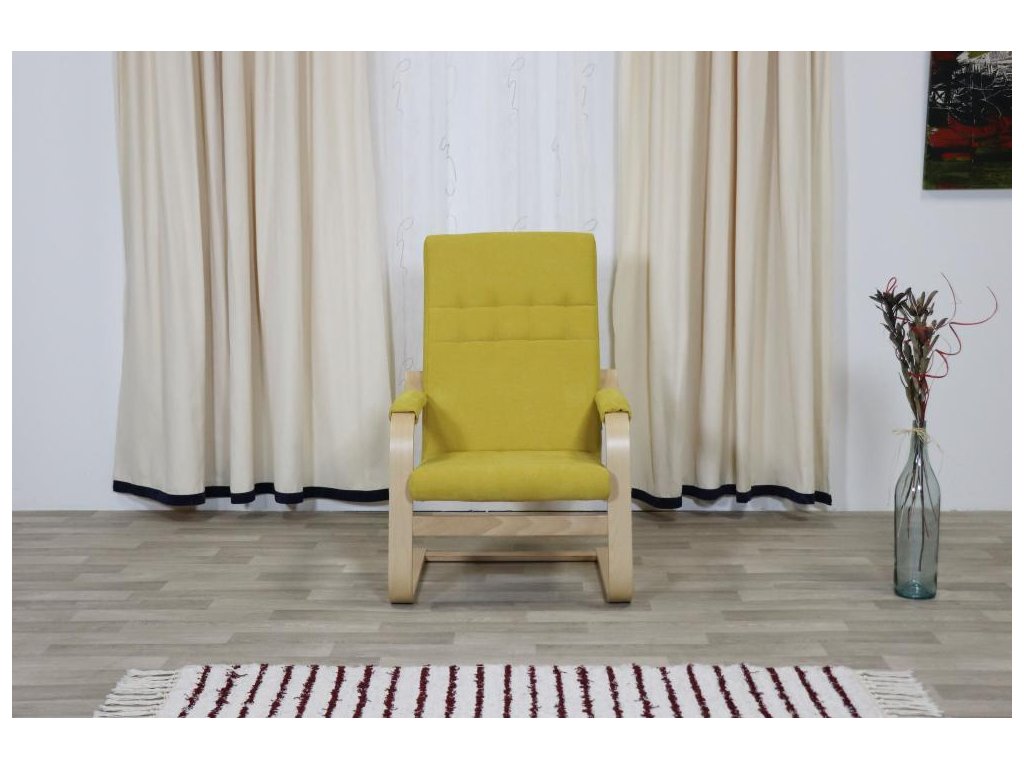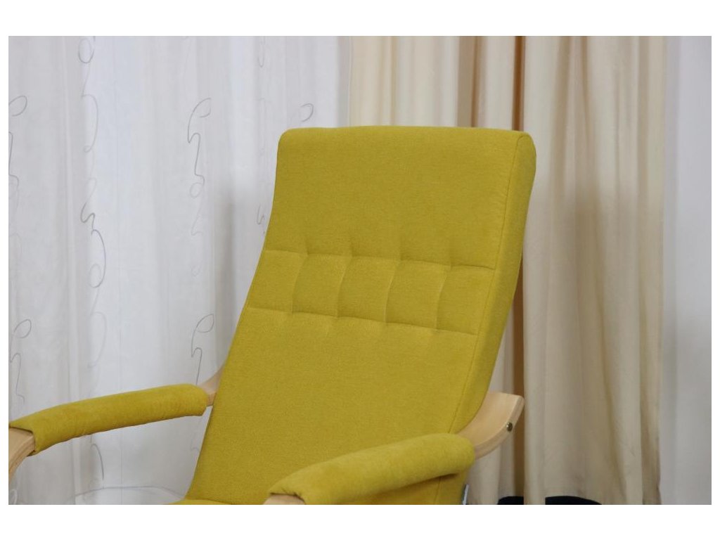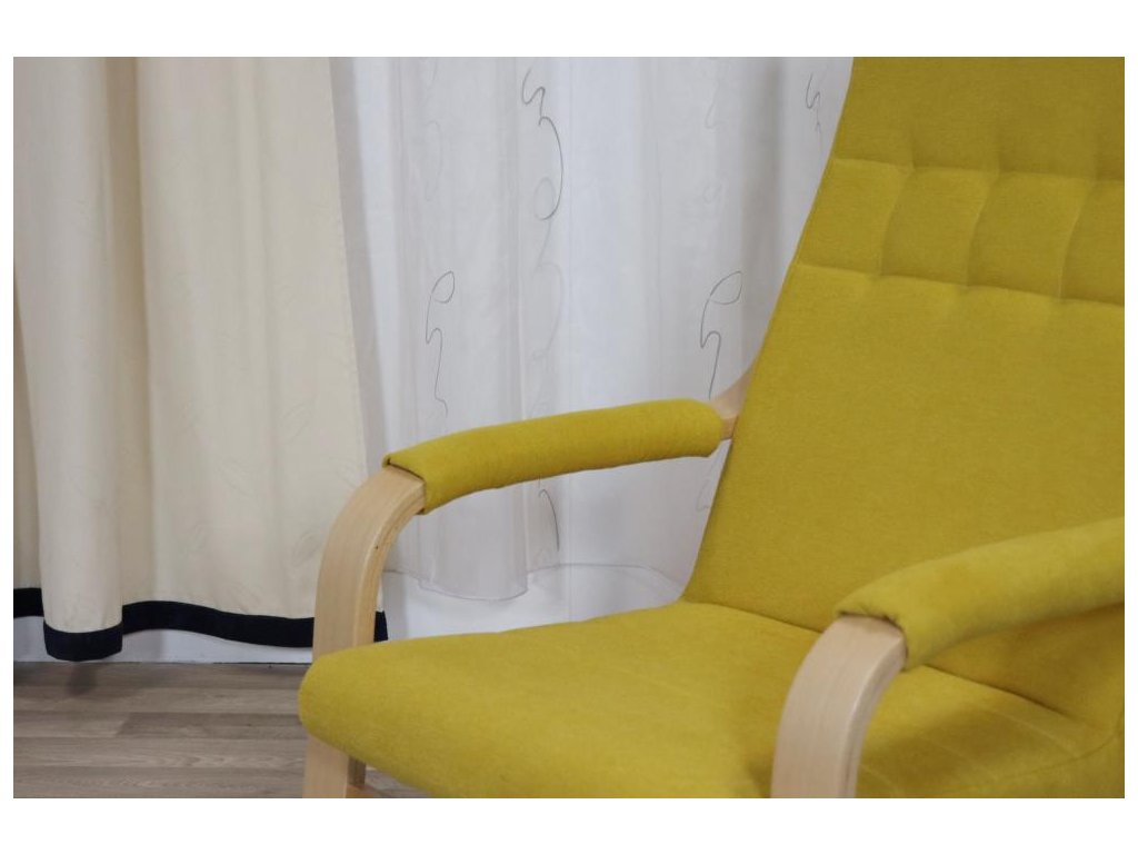 Pohupovací čalouněné křeslo ROBIN s dřevěnými lamelovanými područkami a kovovou nosnou konstrukcí. Pohodlné a lehké křeslo vhodné do domácností, hotelů, penzionů, kanceláří či čekáren.