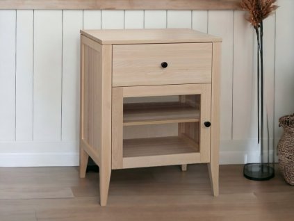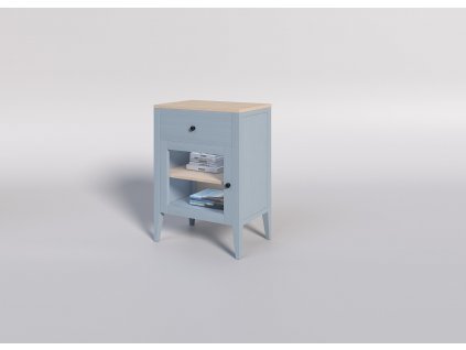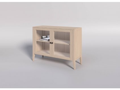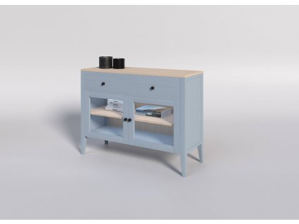 Buková komoda ROMA KT2 šedomodrá prosklená