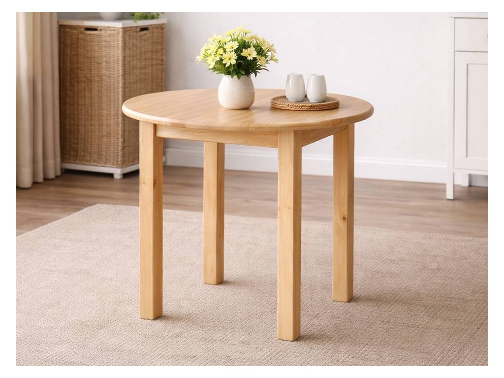 Kulatý jídelní stůl je vhodný i do menšího prostoru. Jídelní stůl je vyroben z borovicového masívu a je ošetřen bezbarvým lakem. Tento kulatý stůl je vhodný do obývacího pokoje nebo jídelny a lze jej kombinovat z židlemi z masivu.