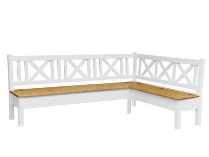 Lavice DOMINO je vyrobena z borovicového masívu a je v přírodní barvě. Dřevěný masív vyniká celou řadou předností. Dřevo je materiál, který nevyžaduje zvláštní péči, má příjemnou vůni a nenabíjí se staticky. Povrchová úprava lavice z masívu je bezbarvý lak, který nábytek chrání před poškozením. Opěrná část této rohové lavice je velice krásná a to díky výřezům, který je na každé opěrce. lavice má v sedací části úložný prostor.
