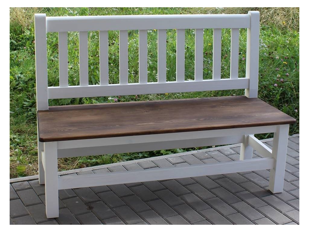Rustikální lavice SWEET HOME je vyrobena z borovicového masivního dřeva a je ošetřena bílou vodou ředitelnou barvou anebo ve dvoubarevné kombinaci (viz. Vzorník). Horní hnědé plochy mohou být ošetřeny voskem anebo lakem. Pro snazší údržbu doporučujeme objednat nábytek s vrchní hnědou deskou v lakované verzi.