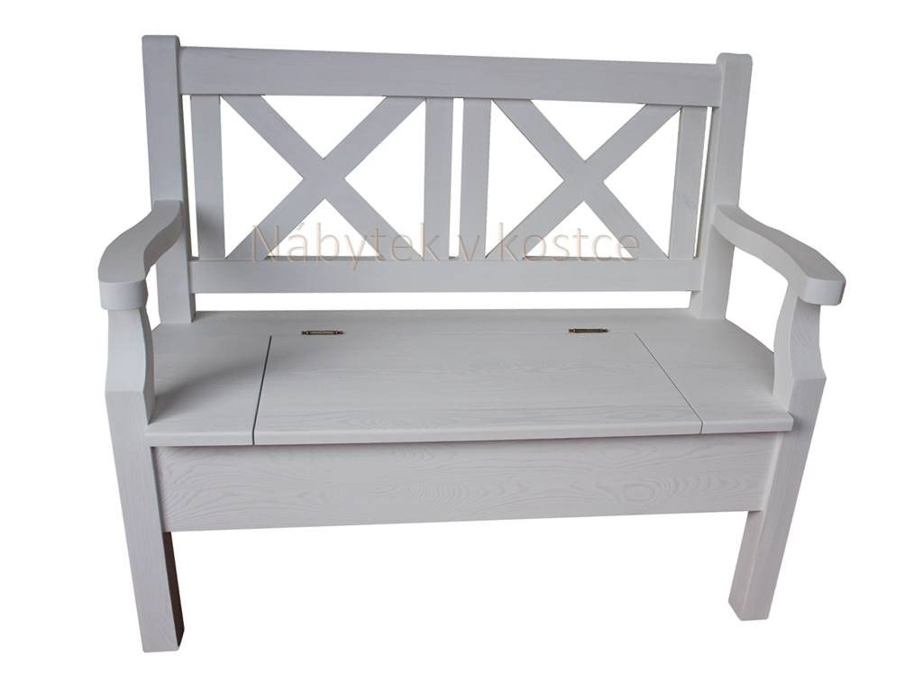 Rustikální lavice SWEET HOME s úložným prostorem je vyrobena z borovicového masivního dřeva a je ošetřena bílou vodou ředitelnou barvou.