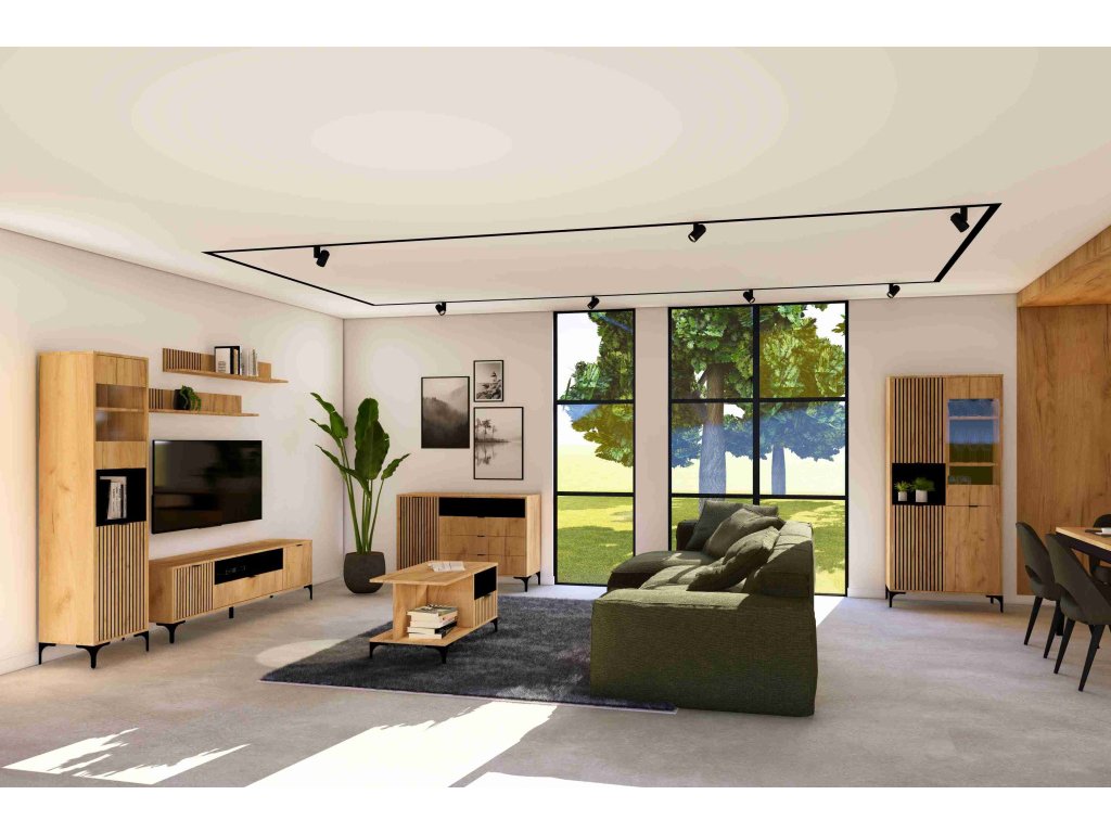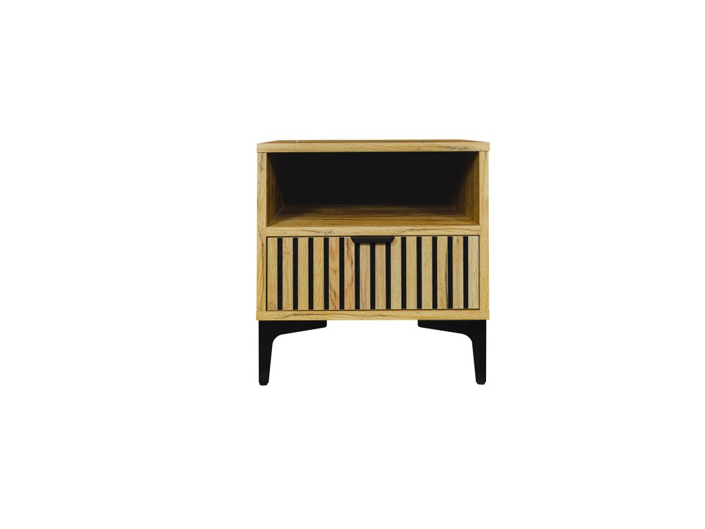 - ✓ Odolné materiály: Vyrobena z kvalitních nábytkových desek (MDF) s odolnou PVC hranou, které zaručují dlouhou životnost a snadnou údržbu. Robustní kovové nohy a akcenty dodávají stabilitu a podtrhují industriální charakter.