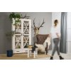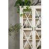 Masivní vitrína METAL 11 má velké prosklené dveře, jejíchž krása je podtrhnuta ozdobnými kříži. Uvnitř jsou tři dřevěné police a ve spodní části se nachází objemná zásuvka, která se vysouvá na dřevěných pojezdech. Skříň je opatřena zlatými kovovými úchyty a panty.