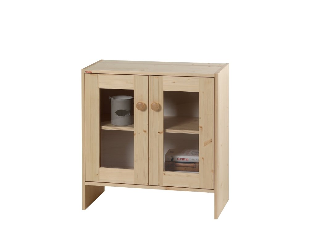 Masivní komoda s prosklenými dvířky SENDY ALFA je elegantní malá vitrína z masivu, který zaujme svou přirozenou strukturou smrkového dřeva a vkusnými prosklenými dvířky. Skvěle doplní každý váš dětský pokoj či studentský pokoj, obývací pokoj nebo pracovnu.