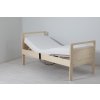 Kromě svého funkčního designu se postel pyšní také krásným přírodním zbarvením. Povrch masivu je zdoben přirozenými liniemi letokruhů a suky, které kousku dodávají jedinečnost. Dřevo bylo navíc ošetřeno ekologickým lakem, který zdůrazňuje přírodní strukturu dřeva, čímž podtrhuje jeho přirozený šarm.
