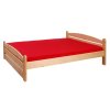 Povrch masivu je ošetřen průhledným ekologickým lakem, který zvýrazňuje přirozenou strukturu dřeva, včetně letokruhů a suků, což z tohoto modelu činí jedinečný kousek, který do vaší ložnice přinese nádech přírody.