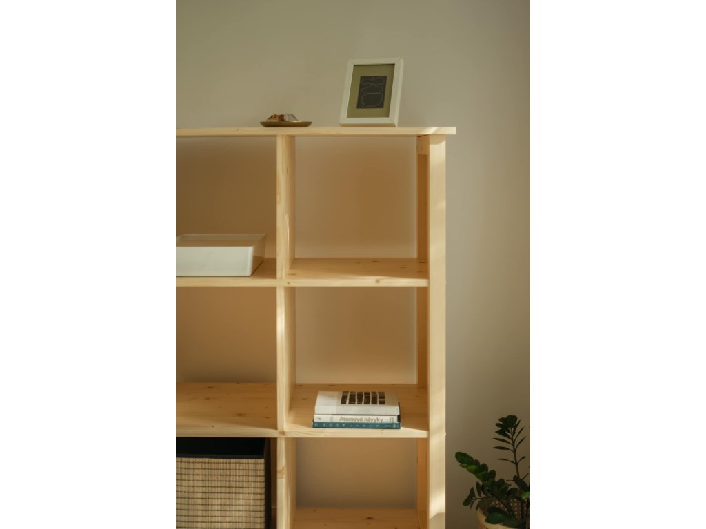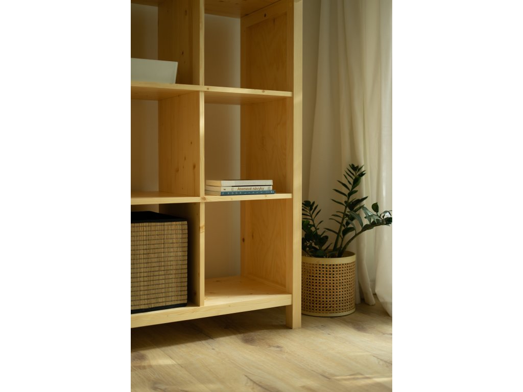 Masivní regál NATUR je působivý dřevěný soliter na hračky a další předměty. Krom bohatého úložného prostoru jistě zaujme svou elegancí a půvabnými liniemi přírodní krásy smrkového dřeva. Tímto způsobem tento masivní kus nábytku lehce doladí každý váš obývací pokoj, dětský pokoj, studentský pokoj anebo interiér pracovny do úplné dokonalosti.
