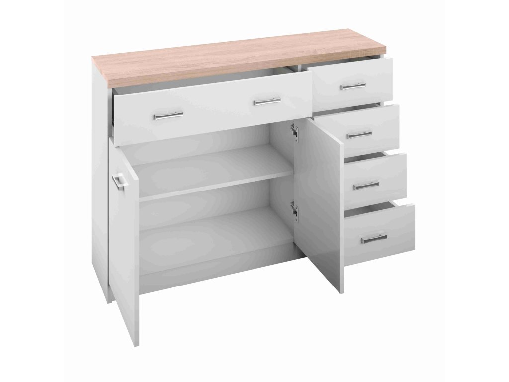 Komoda MIXIO 2D5S dub sonoma/bílá je elegantní a praktický kousek nábytku, který oceníte v každém interiéru. ✓ Díky pěti prostorným zásuvkám a dvěma dvířkům získáte dostatek úložného prostoru pro oblečení, dokumenty či drobnosti. Dekor dub sonoma v kombinaci s bílou působí moderně, lehce rozjasní interiér a snadno se kombinuje s dalším nábytkem. 💡 Výhodou lamina: je odolný, snadno čistitelný a cenově dostupný materiál.