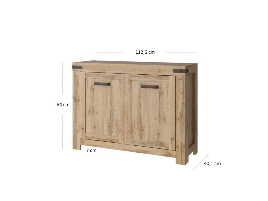 Elegantní dvoudveřová komoda DORI v dekoru dub Navarra. Prostorný úložný prostor s policemi. Dvoudveřová komoda DORI v dekoru dub Navarra nabízí dostatek úložného prostoru pro...