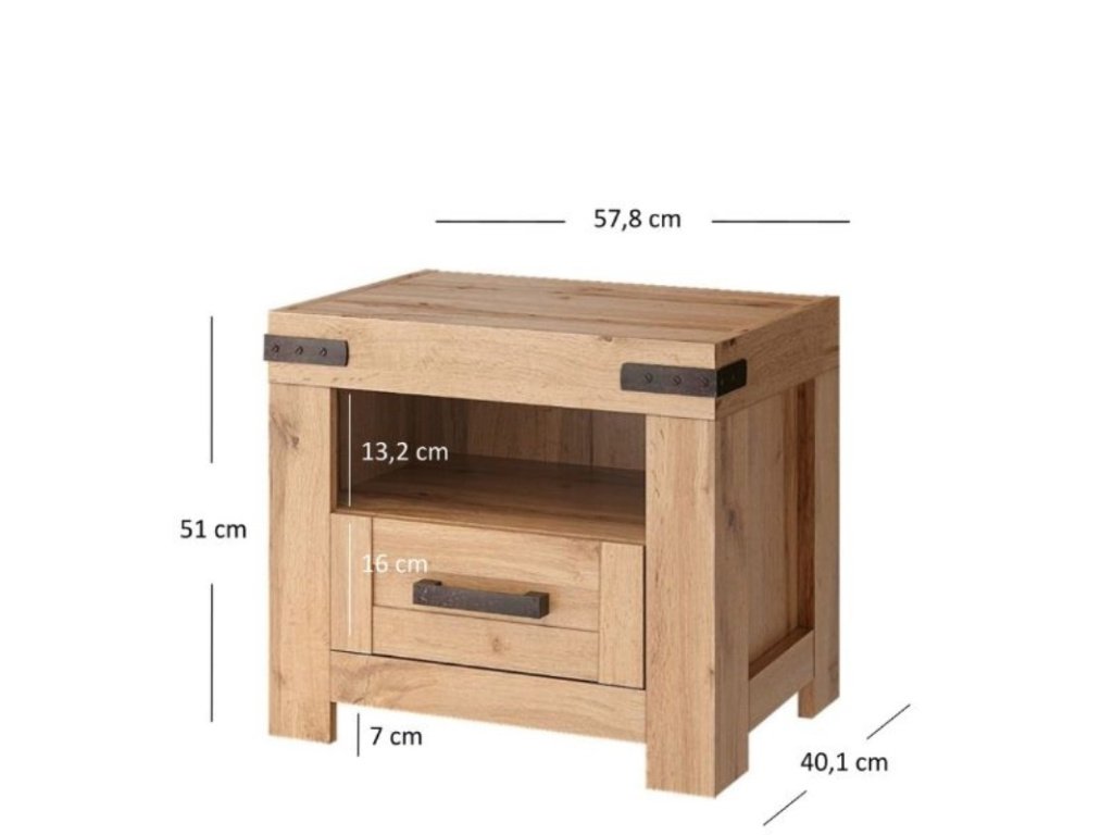 Noční stolek je součástí komplexní 23dílné kolekce MORTY, která vám umožní zařídit ložnici, jídelnu i obývací pokoj v jednotném přírodním stylu. Pro kompletní ložnici využijte naše další akční vystavené kusy v dekoru dub Wotan: