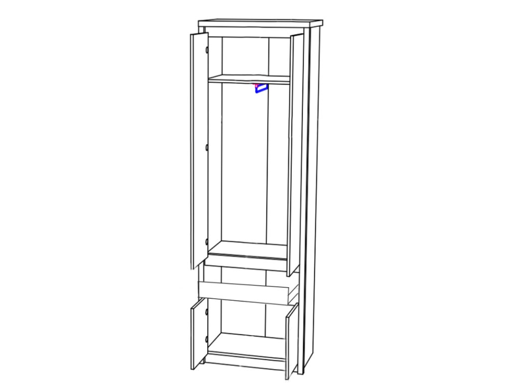 ✓ Skříň je vyrobena z kvalitní laminované dřevotřísky (LTD), která je odolná proti poškrábání, snadno se udržuje a zaručuje dlouhou životnost nábytku.