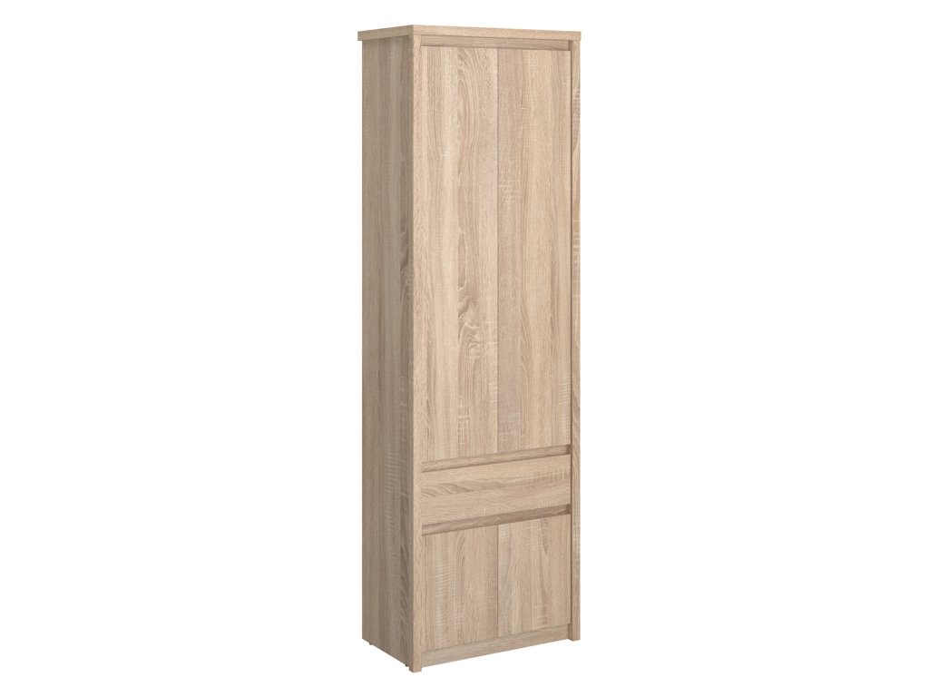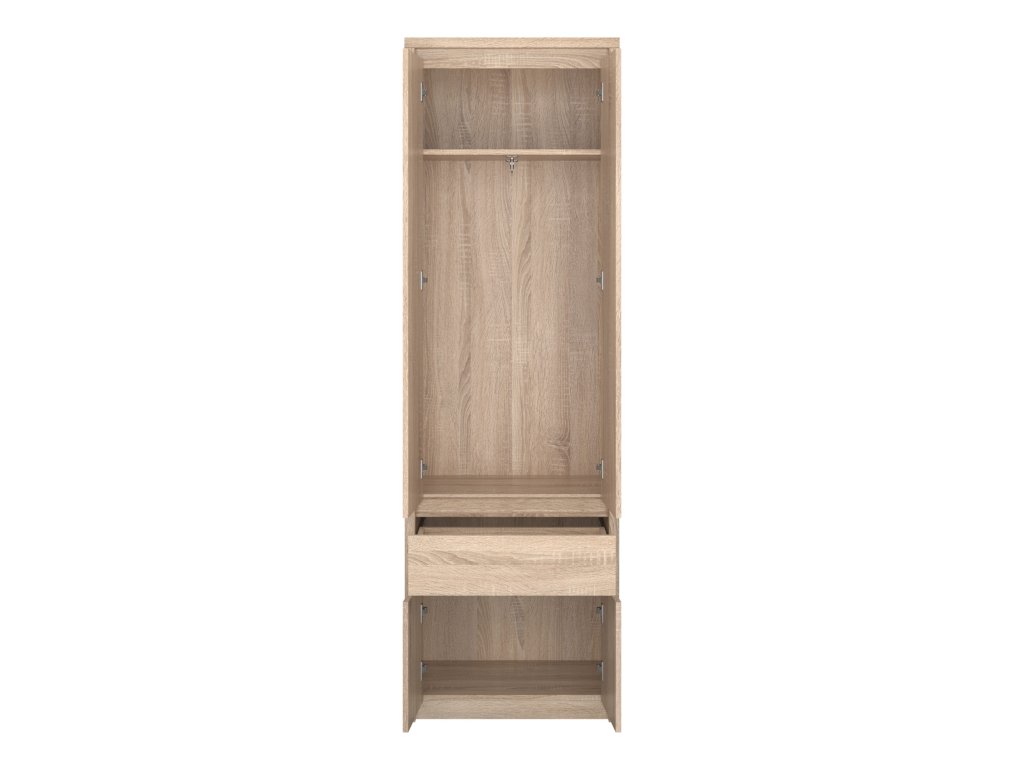 Praktická dvoudveřová šatní skříň NETRON v šířce 70 cm a dekoru Dub Sonoma. ✅ Ideální pro menší prostory, přesto nabízí dostatek úložného místa díky horní polici a šatní tyči. Vyrobena z odolného lamina. Skvěle doplní vaši ložnici či studentský pokoj z kolekce NETRON.
