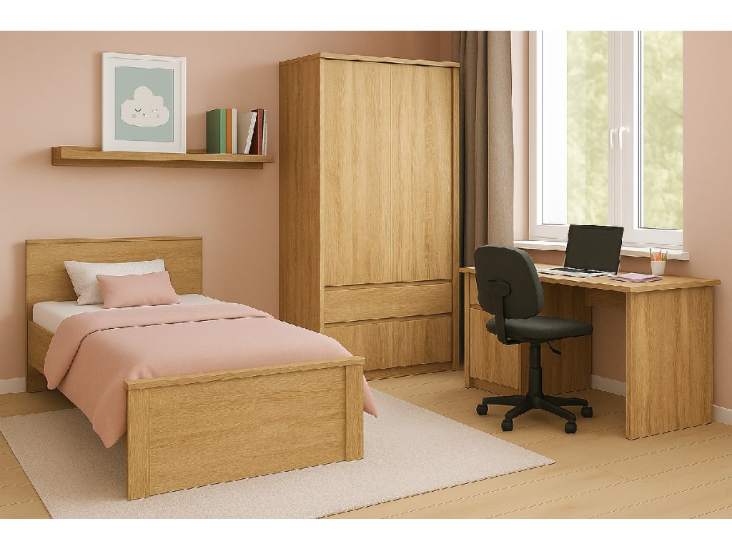 Kompletní sestava NETRON pro studentský dívčí pokoj dub sonoma kombinuje moderní design, kvalitní zpracování a praktické uspořádání pro každodenní pohodlí. Elegantní dekor dub sonoma se snadno sladí s ostatním interiérem. Nábytek dodáváme v demontu – montáž je jednoduchá a zvládne ji každý.