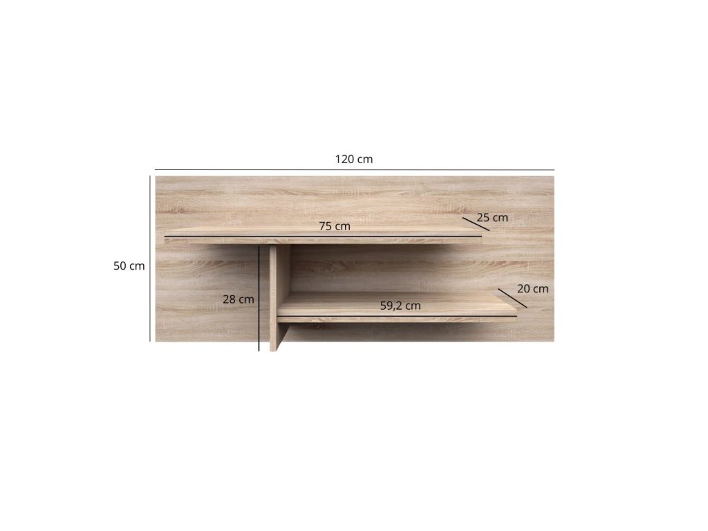 Závěsný panel 120 cm NETRON dub sonoma – šířka 120 cm, hloubka 25 cm, výška 50 cm. Elegantní doplněk pro odkládání a dekorace.