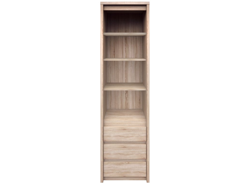 Regál 1D3S NETRON dub sonoma – šířka 57 cm, hloubka 40 cm, výška 210 cm. Kombinace otevřeného a uzavřeného úložného prostoru.