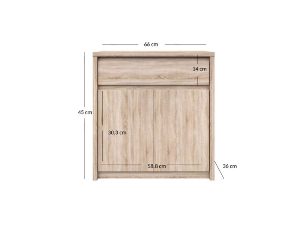 Komoda 2D1S NETRON dub sonoma – šířka 87 cm, hloubka 40 cm, výška 92 cm. Skvělá pro oblečení i školní potřeby.