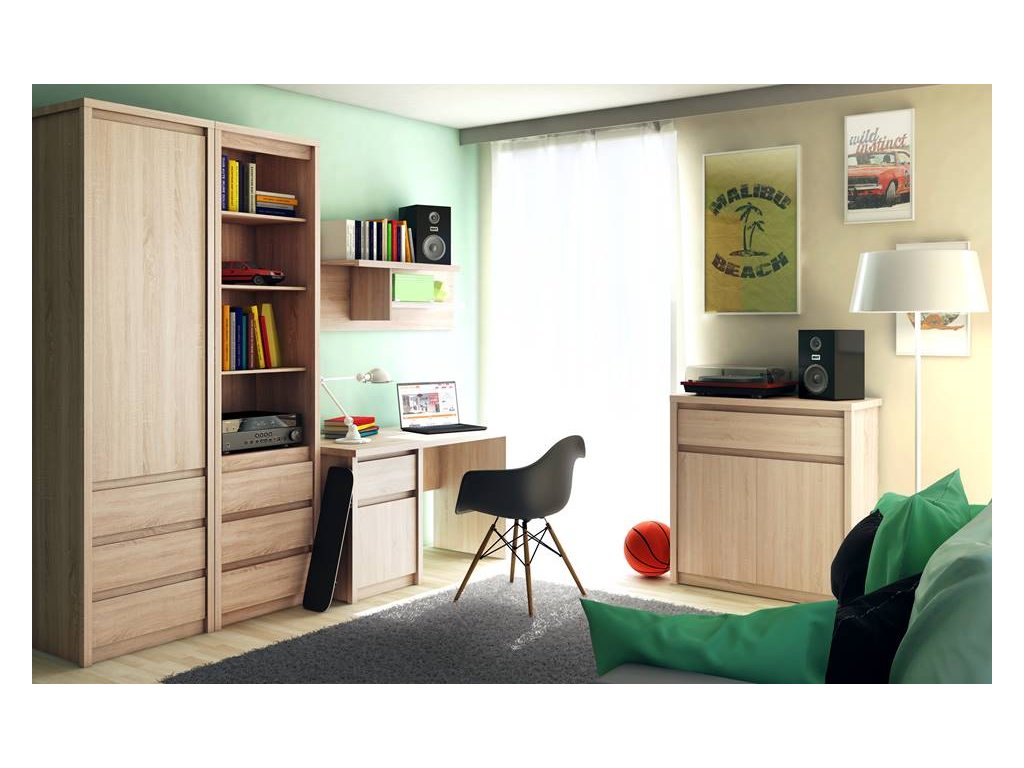 Praktická sestava studentského nábytku NETRON v dekoru dub sonoma spojuje moderní design a chytré úložné řešení. Sestava studentského pokoje obsahuje