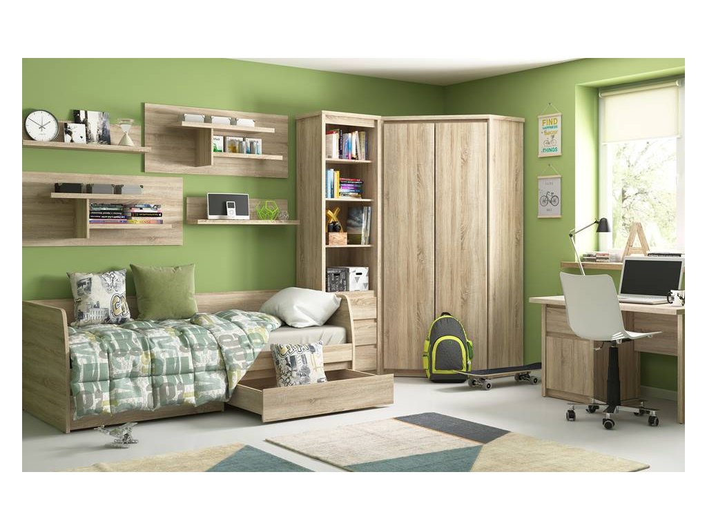 Moderní studentský pokoj NETRON v dekoru dub sonoma nabízí vše potřebné pro pohodlné a praktické bydlení. Sestava obsahuje