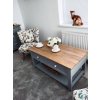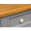 Noční stolek z masivu PROVENCE je spojením bukového a dubového dřeva. Dubové dřevo (horní deska) je ošetřeno lakem a bukové dřevo je ošetřeno akrylovou barvou v šedomodré barvě. Šuplíky jsou bez pojezdu. Možnost objednání se systémem tichého dovírání (u šuplíků).