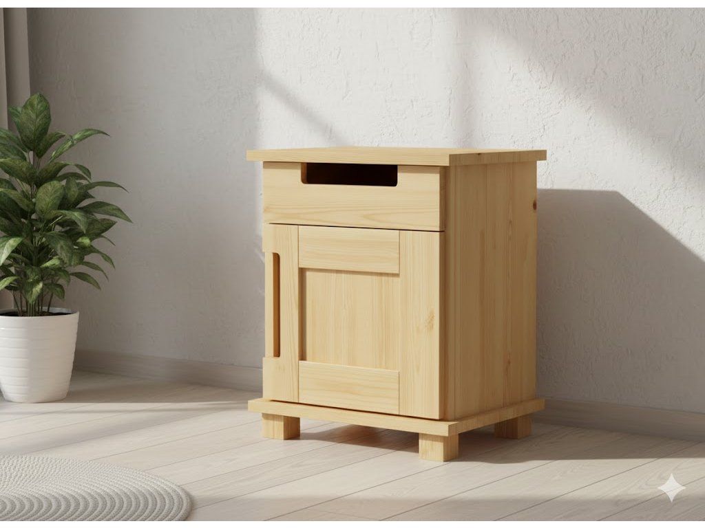 Noční stolek z masivu řeší praktický odkládací prostor vedle postele a zároveň drží stabilitu díky borovicovému dřevu. Dřevěný noční stolek ocení každý, kdo chce jednoduchý, funkční a vizuálně čistý prvek do ložnice bez zbytečných detailů.