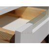 Noční stolek z borovice FELIX nemá úchyty, ale výřezy, které se dají v případě Vašeho zájmu opatřit mléčným sklem.