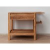 Prezentovaný stolek je vyroben z masivního dubového dřeva prémiové kvality, které je mezi nábytkáři oblíbené pro svou vysokou pevnost, dlouhou životnost a odolnost vůči všednímu mechanickému poškození. Povrch masivu divokého dubu byl ošetřen olejovým nátěrem, který materiálu propůjčuje dodatečnou ochrannou vrstvu, zatímco zdůrazňuje krásné dřevěné linie dubu a četné suky, které činí nábytek jedinečným.