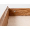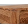 Zaoblené hrany stolku zaručují bezpečné používání a podporují estetičnost nábytku. Příjemný vzhled stolku je způsoben hřejivým zbarvením dubu, které je dále posíleno olejovým nátěrem.