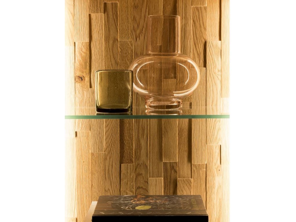 1x Dubová vitrína VIGO 10 (výška 201 cm, šířka 55 cm, hloubka 39 cm).
