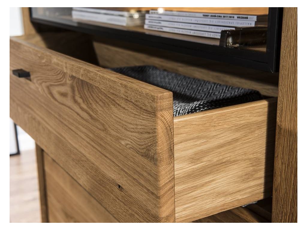 Imponující tvary, jednoduchost a vzdušnost. Dubový nábytek VIGO se vyznačuje výraznými tvary, jednoduchou elegancí a efektivními doplňky. Harmonické sloučení kartáčovaného masivního dubového dřeva, dubového dřeva a kovových prvků působí moderním a jedinečným dojmem. V kolekci Vigo naleznete komody, stěny nebo vitríny, které lze spolu kombinovat. Znatelná struktura dřeva a loftové prvky se budou krásně vyjímat. Kolekce Vigo je splněním snu o osobitém, stylovém bydlení z masivu s velkým množstvím úložného prostoru.