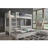 Patrová postel MATYÁŠ je skvělá nabídka pro všechny, kteří chtějí využít prostor svého pokoje tím nejlepším možným způsobem. Patrová 3 osobová postel Vám, díky výsuvnému lůžku, poskytuje další místo na spaní, když ho zrovna potřebujete.