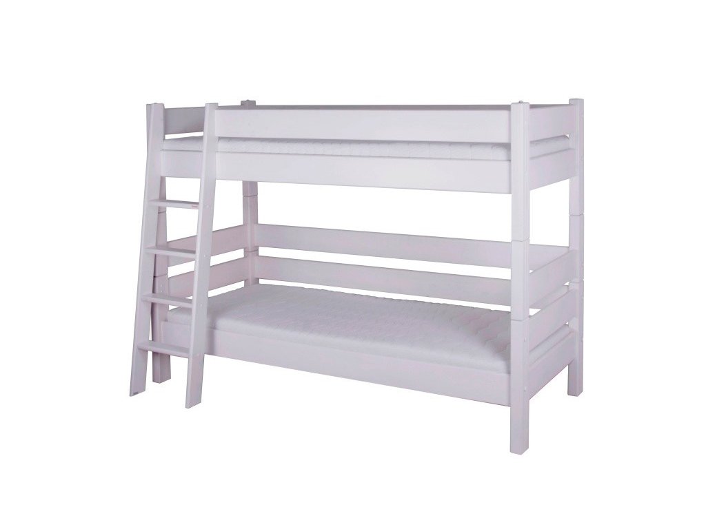 Patrová postel z masivu SENDY 155 ve své bílé variantě zútulní každý dětský pokoj. Se svou plochou k ležení o rozměrech 90x200 cm nabízí tato bílá patrová postel z masivu prostor pro sladký odpočinek vašich ratolestí.