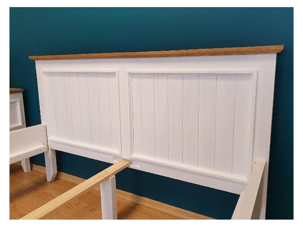 Masivní postel PROVENCE je spojením bukového a dubového dřeva. Dubové dřevo (horní deska) je ošetřeno lakem a bukové dřevo je ošetřeno akrylovou barvou v bílé anebo krémové barvě.