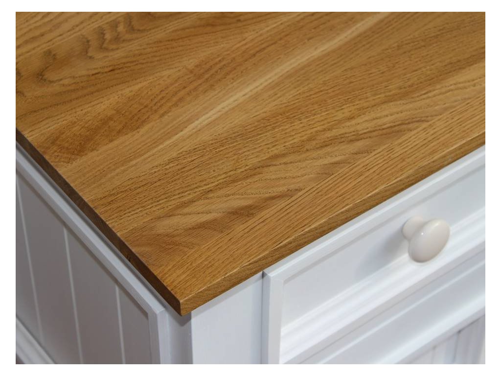 Masivní poste PROVENCE je vyrobena z masivního buku a ošetřena akrylovou barvou v krémové barvě. Vrchní deska je vyrobená z masivního dubového dřeva a ošetřena lakem.