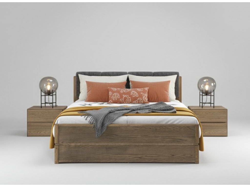 Dubová postel Atlanta 180x200 s úložným prostorem a nočními stolky