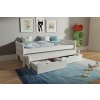 Postel s přistýlkou a úložným prostorem ADRIAN má robustní a odolný rám a masivní nohy 4,5 x 9 cm. Ocenitelné jsou dvě hluboké a prostorné zásuvky na kolečkách, které jdou zcela vytáhnout z pod postele.