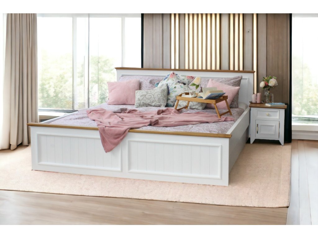 Postel z masivu PROVENCE je nadčasová postel pro milovníky romantických interiérů. Je vyrobena z masivního bukového dřeva, které je natřeno krémovou akrylovou barvou. Horní desky jsou vyrobeny z masivního dubového dřeva, které jsou ošetřeny olejem, což umožňuje snadnou péči. Stačí je otřít navlhčeným hadříkem.