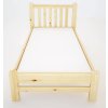 Postel z masivu KINGA je kvalitní postel vyrobená ze smrkového dřeva, sešroubovaná pevně pomocí mosazných šroubů a dřevěných kolíků. Součástí postele je 13-ti laťkový rošt. Matrace není součástí postele.