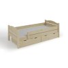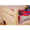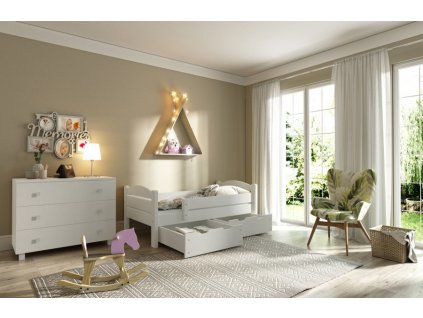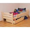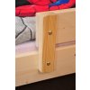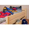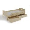 je perfektním řešením pro rodiče, kteří hledají funkční a bezpečnou postel pro svoje děti. Díky bezpečnostním bariérám, které jdou snadno odstranit, lze získat standartní samostatnou postel. Součástí postele jsou dvě prostorné zásuvky na kolečkách, které jsou ideální k uložení ložního prádla nebo hraček pro děti. Postel z Masivu Matěj je vyrobená ze smrkového masivního dřeva . Ocenitelné jsou zaoblené hrany, které ochrání pře případným poraněním. Postel má robustní a odolnou konstrukci lůžka a masivní nohy (4,5 x 9 cm).