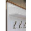 Masivní předsíňová stěna PROVENCE je spojením bukového a dubového dřeva. Dubové dřevo (horní deska) je ošetřeno lakem a bukové dřevo je ošetřeno akrylovou barvou v bílé barvě.