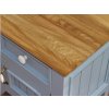 Masivní postel PROVENCE je vyrobena z masivního bukového dřeva a ošetřena akrylovou barvou v šedomodré barvě. Vrchní deska je vyrobená z masivního dubového dřeva a ošetřena lakem.