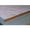 Masivní postel PROVENCE je vyrobena z masivního bukového dřeva a ošetřena akrylovou barvou v šedomodré barvě. Vrchní deska je vyrobená z masivního dubového dřeva a ošetřena lakem.