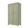 Provensálská skříň PROVENCE je vyrobena z masivního bukového dřeva a ošetřena akrylovou barvou v olivové barvě. Vrchní deska je vyrobená z masivního dubového dřeva a ošetřena lakem.