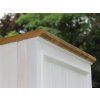 Provensálská skříň PROVENCE je vyrobena z masivního bukového dřeva a ošetřena akrylovou barvou krémové barvě. Vrchní deska je vyrobená z masivního dubového dřeva a ošetřena lakem.
