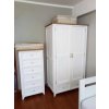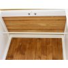 Masivní provensálská skříň PROVENCE je spojením bukového a dubového dřeva. Dubové dřevo (horní deska) je ošetřeno lakem a bukové dřevo je ošetřeno akrylovou barvou v krémové variantě. Šuplíky jsou bez pojezdu. Možnost objednání se systémem tichého dovírání (u šuplíků) - cena na dotaz.